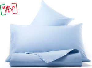 Set Federa E Sacco Copripiumino Parure Copripiumino in Puro Cotone Organico Azzurro 100% Made in Italy Diverse Misure per Letto Matrimoniale E Singolo