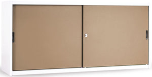 Contenitore basso per archiviazione con ante battenti in melaminico e struttura grigia cm. 180x43x87h