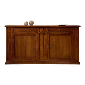 Biscottini Credenza Country in legno massello di tiglio finitura noce L142xPR50xH225 cm. Made in Italy