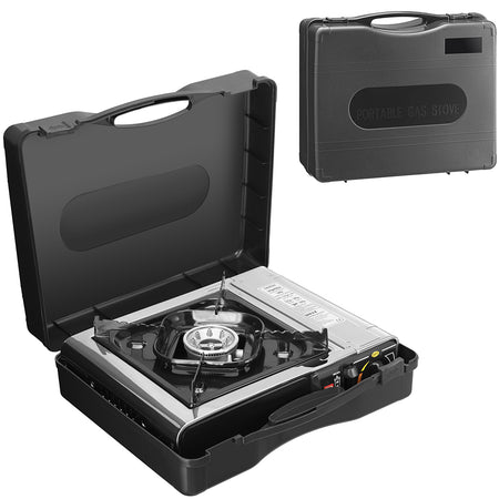 Fornello a Gas 1 Fiamma Portatile con Valigetta per Campeggio Grigio