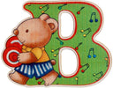 Sono lettere decorative ispirate alla tradizione, ma con un design originale, studiato per piacere ai bambini. La linea "Lettere e Note in Musica" affianca il segno di vocali e consonanti al disegno di animali che suonano: conigli con la tromba, orsetti con i piatti, scoiattoli con percussioni.