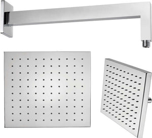 Braccio Doccia Ottone Cromato + Soffione Doccia Quadrato Acciaio Inox 500x500x2 Mm Spessore