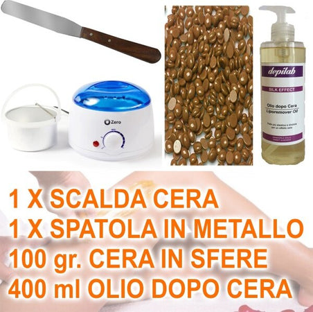 Kit Depilazione Brasiliana Scalda Cera Spatola Olio Sfere Perle Ceretta Indolore