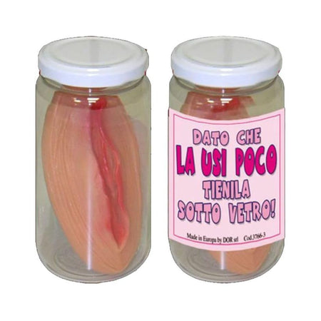 Vasetto Barattolo con Vagina Etichetta Con Scritta "dato Che La Usi Poco Tienila Sotto Vetro"