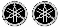 - Coppia di adesivi in resina 3D tondi con logo diapason nero-argento, ideale per personalizzare moto e scooter Yamaha.
