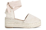 Scarpa in tessuto con allacciatura schiava su zeppa corda