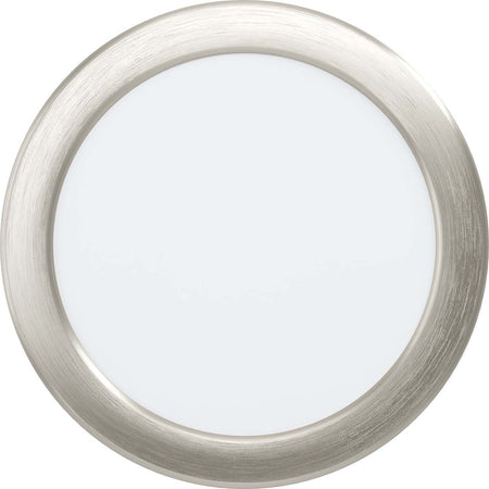 Il faretto ad incasso della serie FUEVA 5 Moderno ha una struttura in Acciaio Argento.. Il diffusore è in Policarbonato Bianco; monta Led integrato da 11W 4000K 1350lm. Lampadina inclusa: SI. Dimensioni: D.16,6. L'illuminazione da incasso a LED FUEVA 5, con diametro di 166 mm, è realizzata in metallo color nichel opaco. Grazie alla sua profondità di incasso molto ridotta pari a soli 26 mm, questa lampada si armonizza in modo ideale in qualsiasi ambiente e può essere integrata anche in materiale isolante. I LED integrati emanano una luce bianca neutra e sono ben nascosti dal diffusore bianco. Per l'incasso è necessario un incavo con un diametro di 155 mm. Il design senza tempo e la luce bianca neutra da lavoro rendono questo faretto da incasso ideale per qualsiasi ambiente in cui sia necessaria una buona illuminazione, ad esempio nella cucina, nel corridoio, nel ripostiglio o in ufficio.