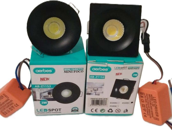 Mini Faretto LED COB 3W NERO incasso a molle cartongesso Punto luce Spot fisso 240Lm 220V ip20