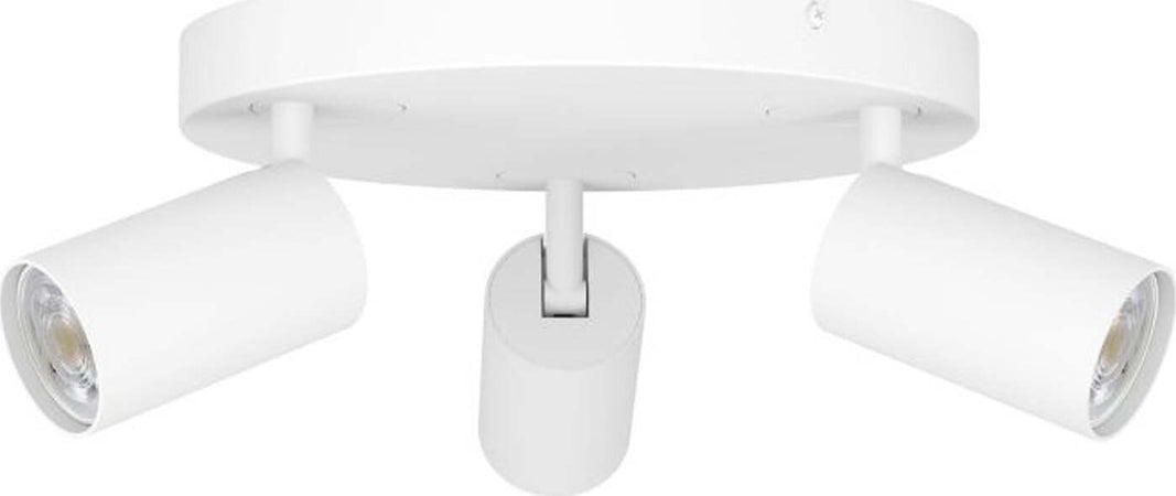 Spot della serie TELIMBELA-Z Moderno ha una struttura in Acciaio Bianco.. Monta 3 GU10 da 4,9W lm. Lampadina inclusa: SI. Dimensioni: H.9,7xD.25. La plafoniera a LED TELIMBELA-Z della gamma connect.Z Smart Home è costituita da una base rotonda in metallo bianco e da tre spot metallici orientabili. Le lampadine a LED GU10 sono incluse. È possibile personalizzare la luce scegliendo tra luce bianca calda, bianca neutra e fredda e una varietà di colori di luce RGB. La luce può essere regolata tramite l'app gratuita AwoX Home Control, che consente di accedere a funzioni come la regolazione della luminosità, il timer, simulazione di presenza e molto altro ancora. Si può regolare anche tramite assistenti vocali compatibili o tramite telecomando disponibile separatamente. Si controlla tramite Bluetooth e ZigBee 3.0. Questa plafoniera è ideale per illuminare il soggiorno, lo studio o il corriodio, scegliendo dove indirizzare la luce a seconda delle esigenze.