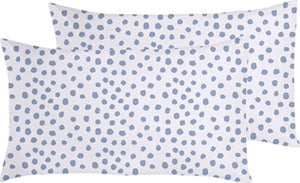 Set 2 federe coppia di federe bifaccia doubleface stampa digitale 100% cotone Made in Italy POIS BIANCHI SU CELESTE