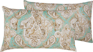 Set 2 Federe Coppia Di Federe Bifaccia Doubleface Stampa Digitale 100% Cotone Made In Italy Paisley Verde /bianco