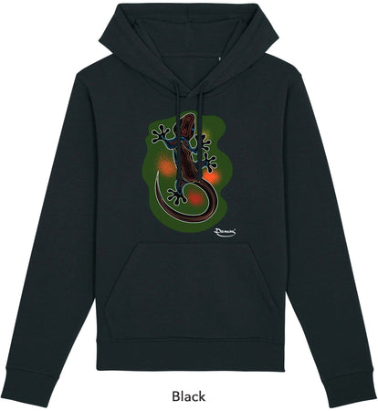 Felpa donna in cotone organico con cappuccio e tasche, disponibile in vari colori, con stampa serigrafica "Lucertola".