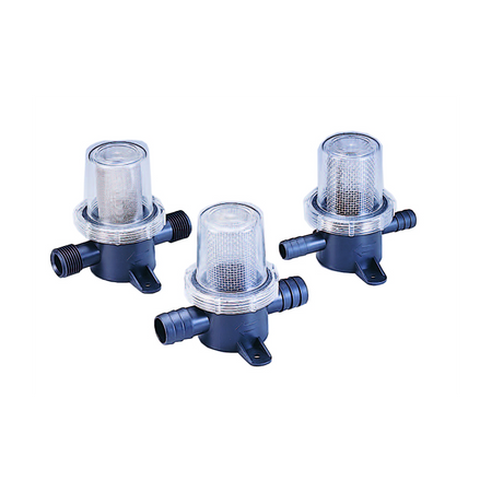 Filtro da usare per evitare intasamenti della pompa causati dai detriti presenti in sentina. Involucro in plastica con coperchio trasparente per facilitare l’ispezionee la pulizia della rete filtrante.