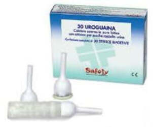 Catetere tipo preservativo (Uroguaina) in puro lattice naturale per la raccolta delle urine nei casi di incontinenza maschile. Attacco per connessione a sacca raccolta urina. Astuccio 30 uroguaine + 30 strisce biadesive realizzate in idrocolloide (sottili ed estremamente sagomabili).