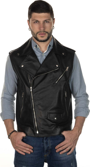 Chiodo Tre Tasche - Chiodo Uomo Nero in vera pelle con Zip Argentate