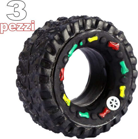3 Giocattolo Ruota Pneumatico Gomma Suono Resistente Da Masticare Per Cani