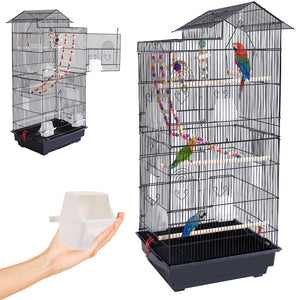 Gabbia Voliera Nera per Uccelli Volatili Pappagalli con 2 Aperture e Giocattoli