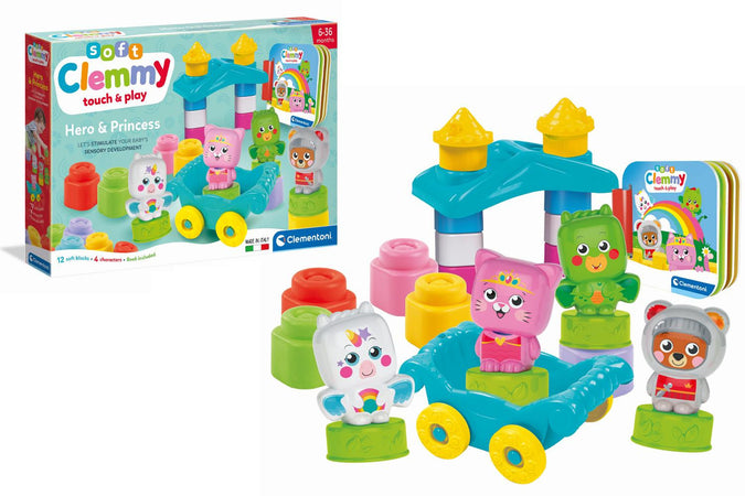 Tanti mattoncini colorati, 4 fantastici personaggi, un castello e una carrozza per immergersi nel libro delle fiabe Clemmy Hero e Princess. I mattoncini Clemmy lavabili e atossici sono pensati per far giocare i piu' piccoli in assoluta sicurezza. Tanti colori vivaci che stimolano la percezione visiva, l'attenzione e la capacita' di osservazione.