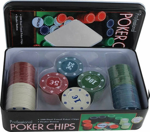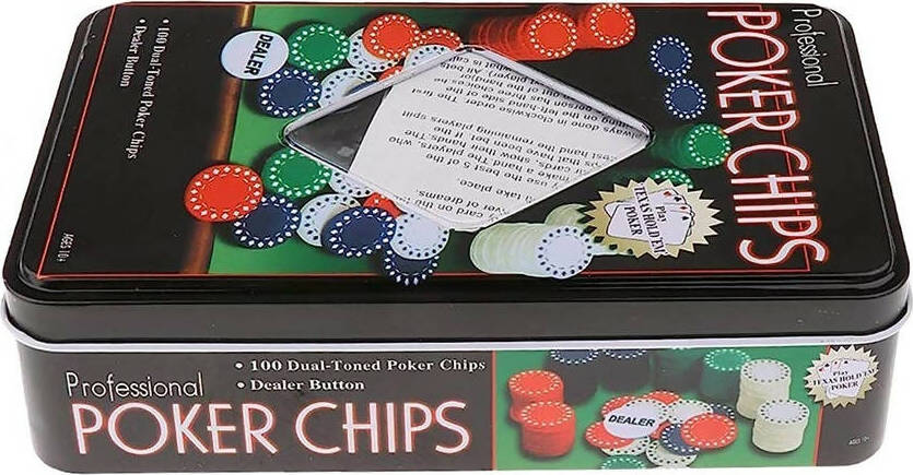 Set da poker professionale 100 fiches e scatola in metallo per texas holdem