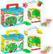 Vasetto contenente l'impasto di plastilina che funge anche da mattarello per stendere la pasta. Una meta' piatta e l'altra meta' con stampa. Taglierina sagomata nella parte superiore del tubo. Ottimo per i bambini.