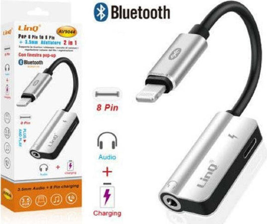 Adattatore 2in1 Da 8 Pin A Lightning + Jack 3,5mm Audio Bluetooth Ricarica Av9044