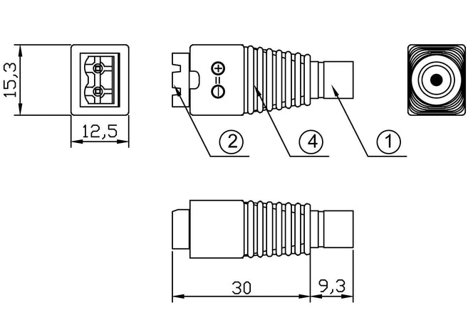 - Plug DC 2,5 (interno) x 5,5 (esterno) mm femmina