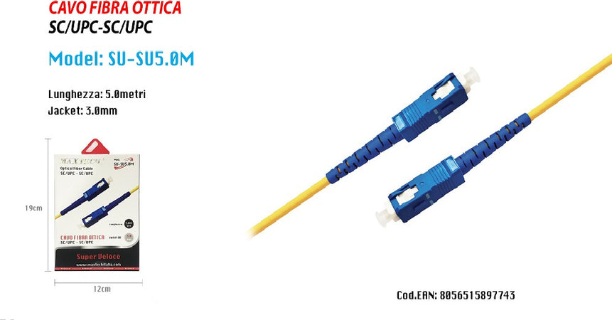 Cavo Audio Fibra Ottica Connettore Rapido Optical Sc/upc 5 Mt Maxtech Su-su5.0m