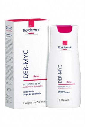 Detergente riequilibrante a pH 4.5 per il ripristino dell'acidità fisiologica delle mucose intime. Grazie ai suoi principi attivi e alla sua particolare ricchezza di componenti idratanti, Der-myc Rosa forma un film protettivo prevenendo le infezioni batteriche e micotiche vulvo-vaginali. Il climbazolo svolge spiccata attività antimicotica. L'argento colloidale ha attività antibatterica. Per la sua delicatezza è indicato per la detersione intima quotidiana sia maschile che femminile.