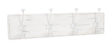 Biscottini Attaccapanni da parete in legno massiccio e ferro forgiato a mano finitura bianco anticato 78x10x21 cm