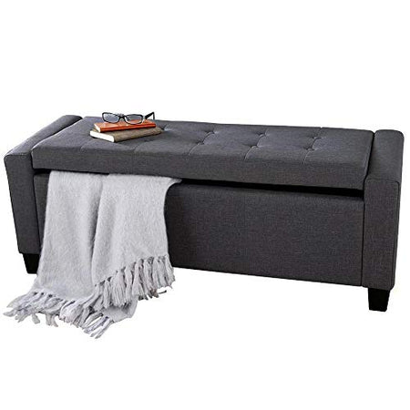 Cassapanca Pouf Contenitore Panca Sgabello Poggiapiedi in Tessuto Grigio Scuro