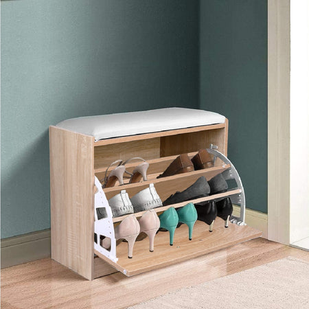 Panca Scarpiera 1 Anta 60x30 H 48 cm 3 vani Seduta in Pelle Ecologica Quercia
