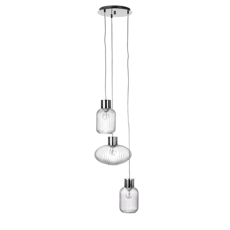 Lampadario 3 luci "Showy" in acciaio e vetro