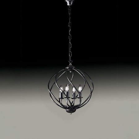 Lampadario a Gabbia 4 Luci Ferro Nero e Argento Serie Katerina
