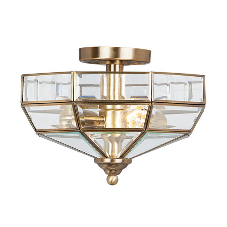Lampadario Contemporaneo Old Park Ottone Antico Vetro 2 Luci E27