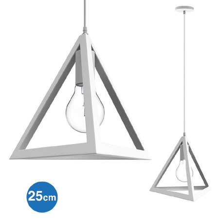 Lampadario Sospensione Piramide 25cm Metallo E27 Design Moderno Bianco