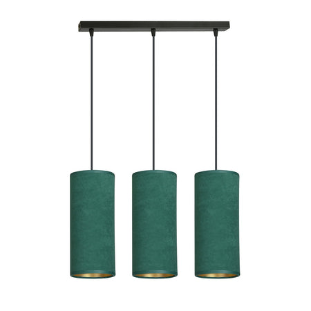 Sospensione 3 Luci Bente In Acciaio Nero E Paralumi Verde E Oro