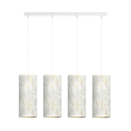 Sospensione 4 Luci Karli In Acciaio Bianco E Paralumi Effetto Marmo Dorato