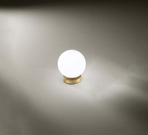 Lampada da tavolo con corpo in metallo oro e diffusore in vetro acidato, è un'elegante lampada da parete con un design moderno e raffinato.. È adatta ad essere installata sia in ambienti domestici che in uffici o negozi. Grazie al suo stile semplice ed elegante, questa applique si adatta facilmente a qualsiasi tipo di arredamento e aggiunge un tocco di raffinatezza ed eleganza alle pareti della tua casa o del tuo ambiente di lavoro.