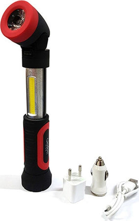 Torcia Doppia Luce Led Con Base Magnetica Da Lavoro Ricaricabile Usb Dt-2018