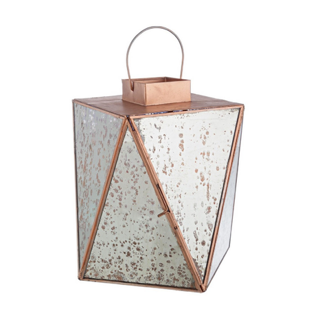La lanterna Gil Copper è caratterizzata da una struttura in ferro che le conferisce robustezza e resistenza, mentre il suo design accattivante e moderno è completato da dettagli in vetro.