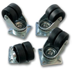 Kit composto da 4 ruote per gondola bifacciale con pannelli in legno
