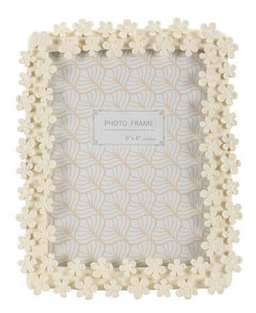 Cornice rettangolare da appoggio in resina dal design composto da un insieme di fiorellini. Può essere posizionata sia in orizzontale che in verticale. Dimensioni foto cm 15x20.
