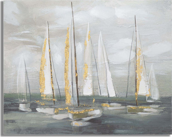 Dipinto Su Tela Gold Boat Cm 100X2,8X80