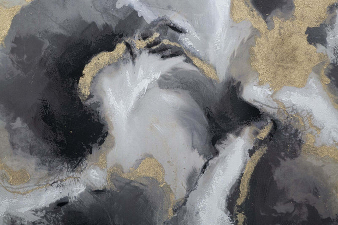 Dipinto su tela con telaio in legno. Originali dipinti astratti dalle linee ipnotiche che uniscono la brillantezza dell'oro all'eleganza dell'argento e del nero conferendo un stile unico. Un tocco d'arte direttamente a casa tua.