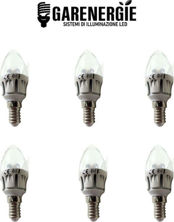 kit 6pz lampadina oliva 5w led e14 bianco caldo 3000k