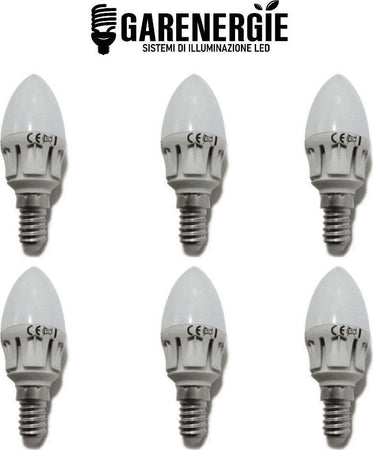 kit 6pz lampadina oliva candela 6w led bianco caldo 3000k