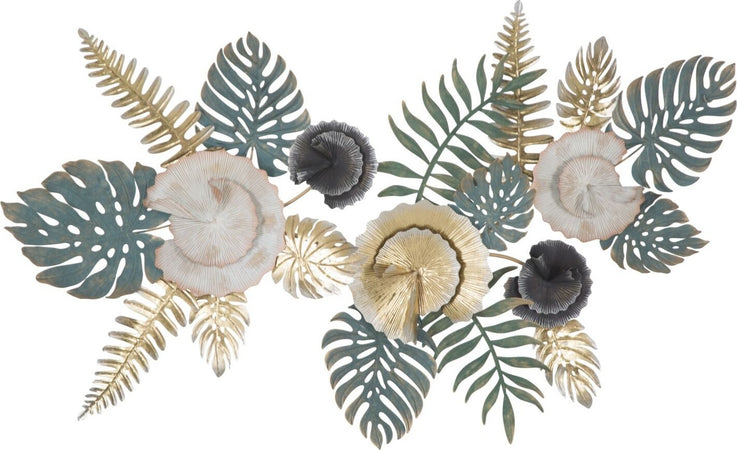 Pannello in metallo con foglie. I pannelli 3D sono il nuovo trend per decorare le pareti. Il metallo laccato si declina in forme geometriche, vegetali o animali che conferiscono un'allure glamour e sorpendente ad ogni ambiente