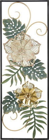 Pannello rettangolare con foglie in metallo. I pannelli 3D sono il nuovo trend per decorare le pareti. Il metallo laccato si declina in forme geometriche, vegetali o animali che conferiscono un'allure glamour e sorpendente ad ogni ambiente
