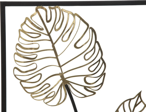 Pannello rettangolare con foglie in metallo. I pannelli 3D sono il nuovo trend per decorare le pareti. Il metallo laccato si declina in forme geometriche, vegetali o animali che conferiscono un'allure glamour e sorpendente ad ogni ambiente