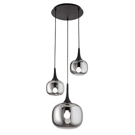 Sospensione in metallo con tre diffusori in vetro Nero Fume 1Xe27+2Xe14 29X39X150Cm